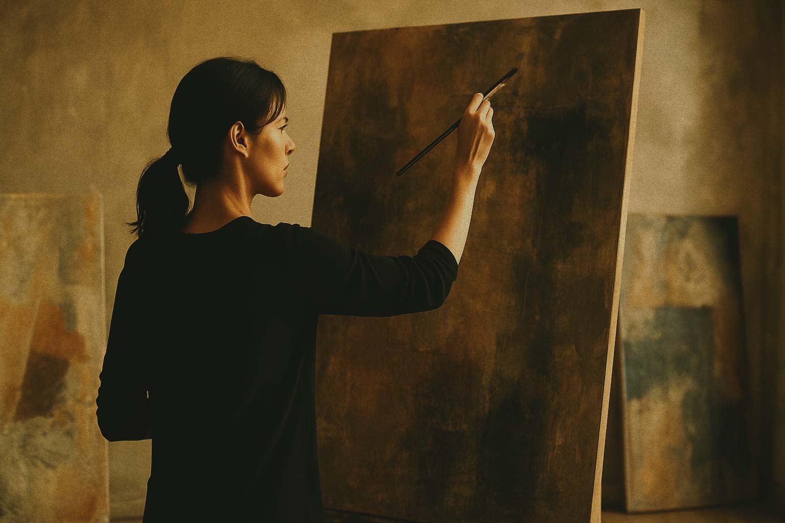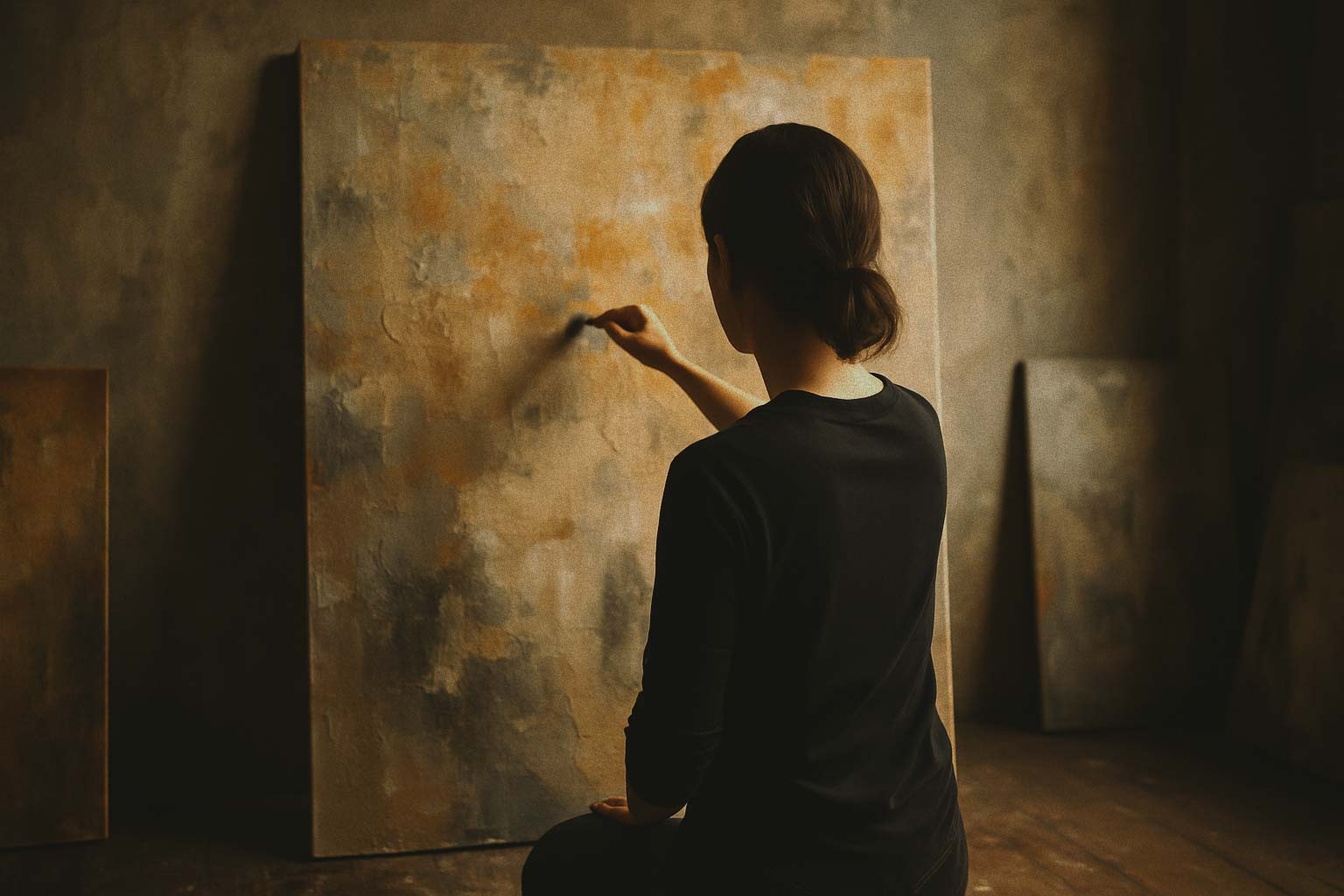 Her early canvases captured concrete walls, rust, and forgotten corners. Each painting echoed the beauty hidden in decay and imperfection.